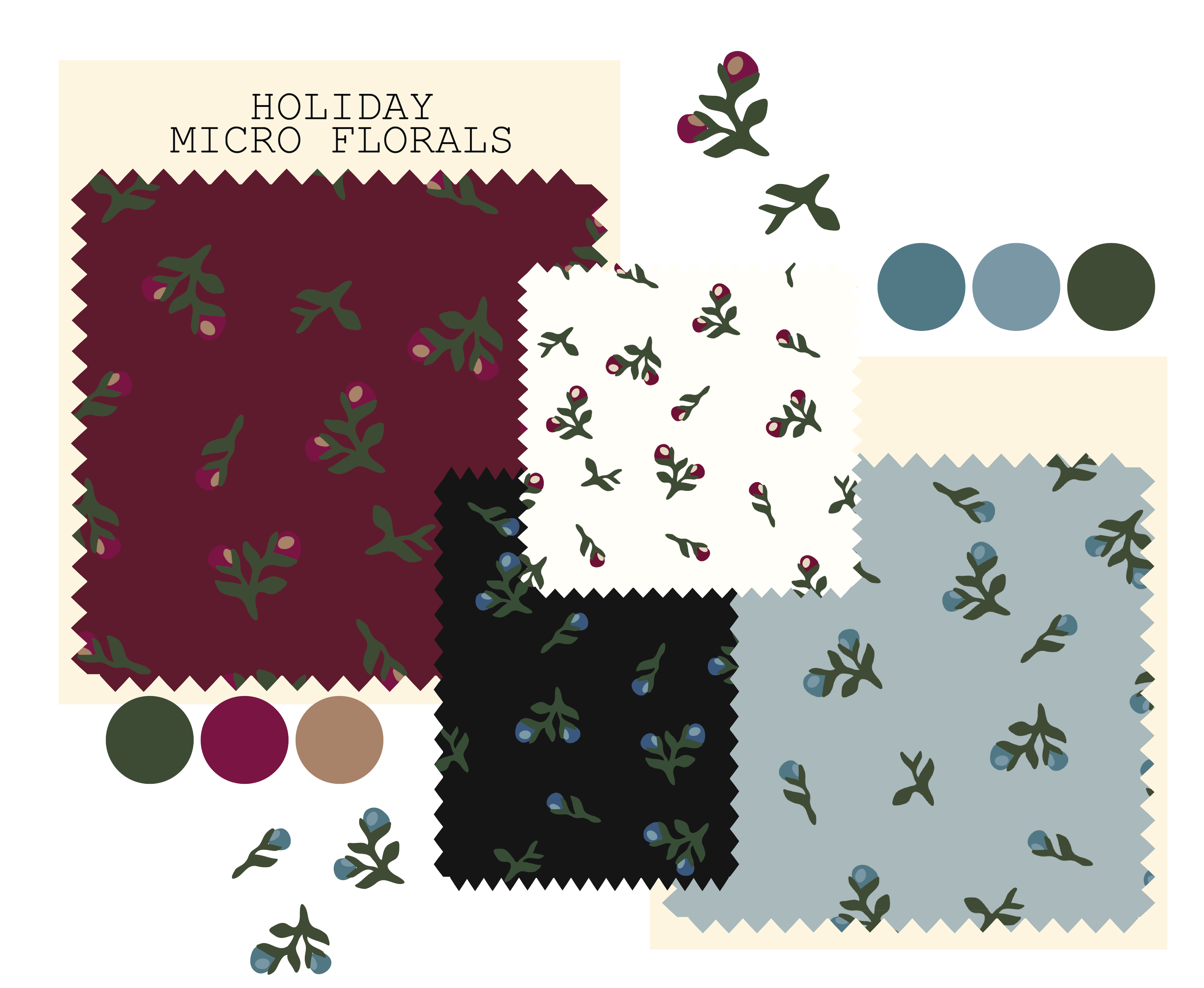 Micro floral print created for holiday collections. Designed for a festive yet timeless feel.
