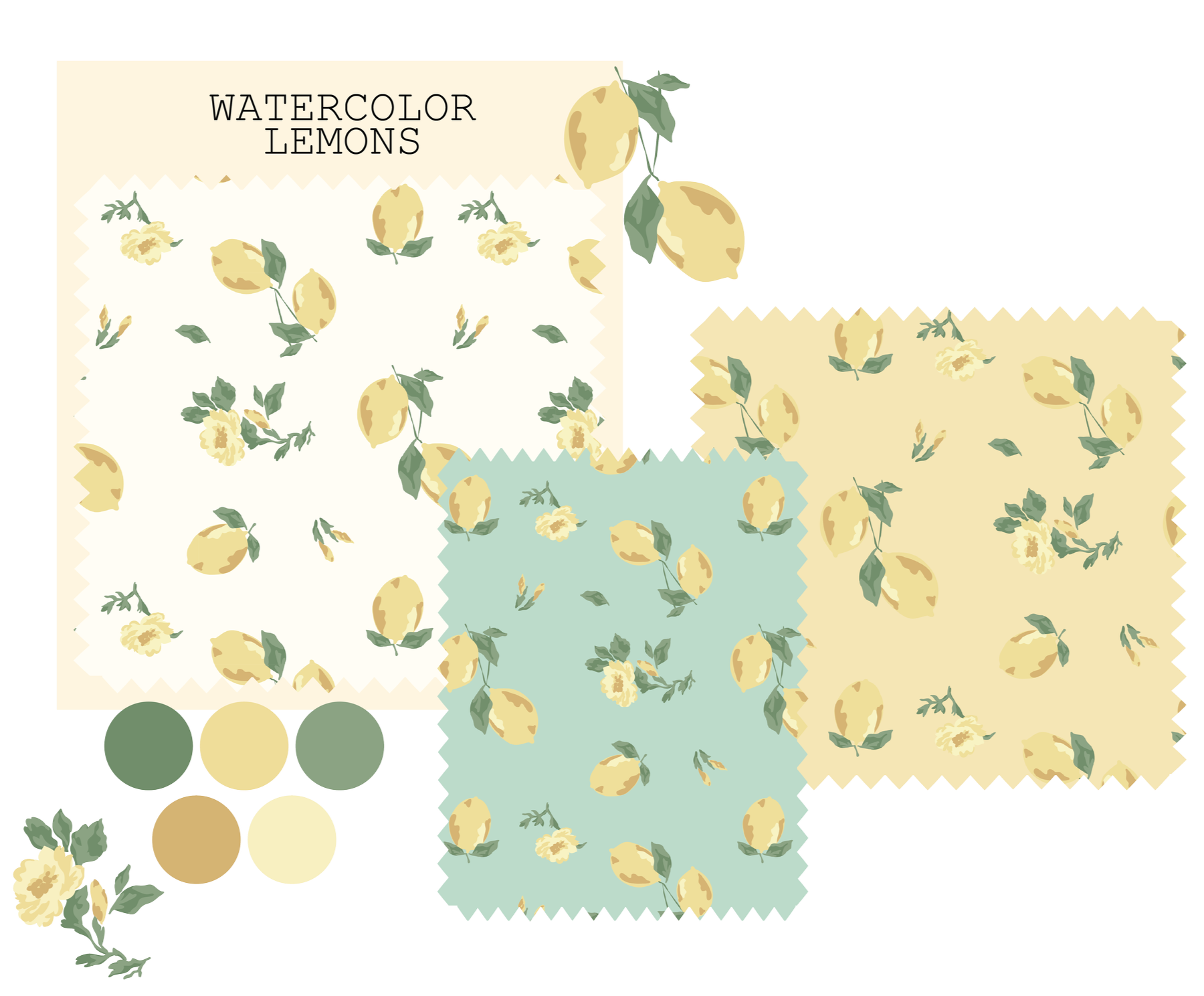 Watercolor lemon print developed for Spring 2026 apparel. Used on skirts, dresses, and tops at Nectar Clothing